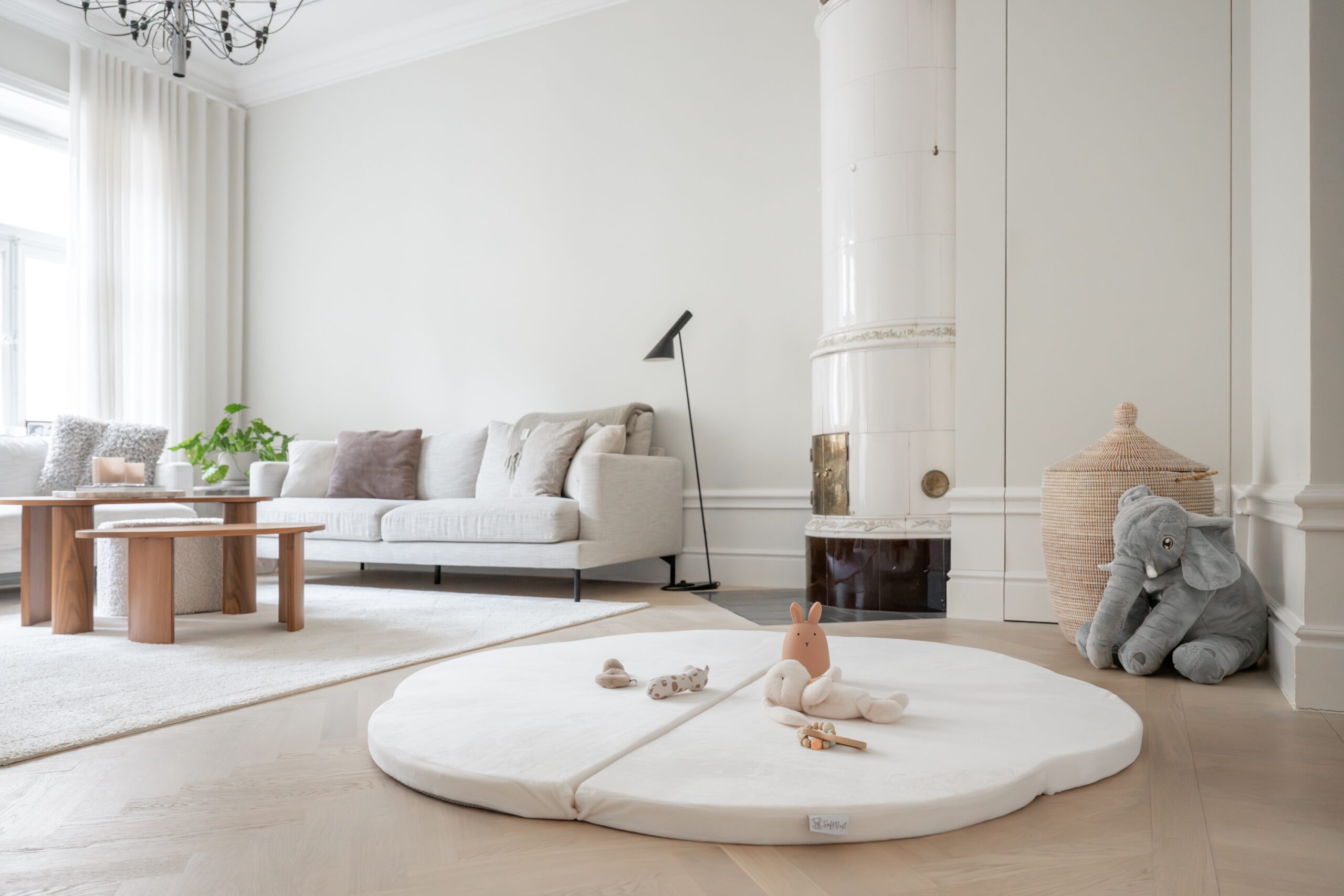 Upplev den perfekta kombinationen av stil och komfort med vår molnformade lekmatta! Den generösa skumfyllningen ger en mjuk och stötdämpande yta, medan det mysiga överdraget i soft velvet tillför en elegant touch till ditt hem. Överdraget är smutsavvisande och enkelt att torka av vid spill, och vid behov kan det enkelt tas av och tvättas för en fräsch och ren känsla – perfekt för lekfulla små händer.